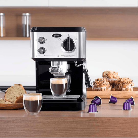 Sencilla, fácil de usar, con resultados extraordinarios. Esta cafetera para preparar espressos y cappuccinos, tiene 19 bares de presión que permiten una extracción óptima del sabor y más crema . Además, cuenta con dos porta-filtros. Uno para usar con café molido, y el otro que es compatible con las cápsulas OrignaLine de Nespresso®*. El tubo de vapor con boquilla produce gran espuma para que tus cappuccinos y lattes tengan la consistencia perfecta.