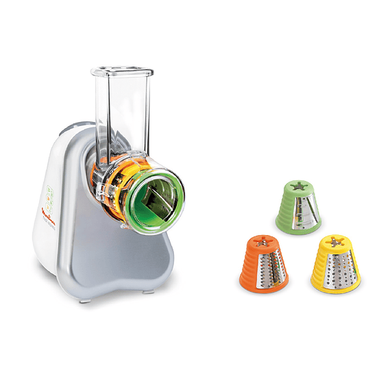 Con Rallador Fresh Express eso es cosa del pasado. Ahora podrás cortar todas tus frutas y verduras con sólo presionar un botón. Posee una amplia entrada para incorporar tu alimento de forma directa.